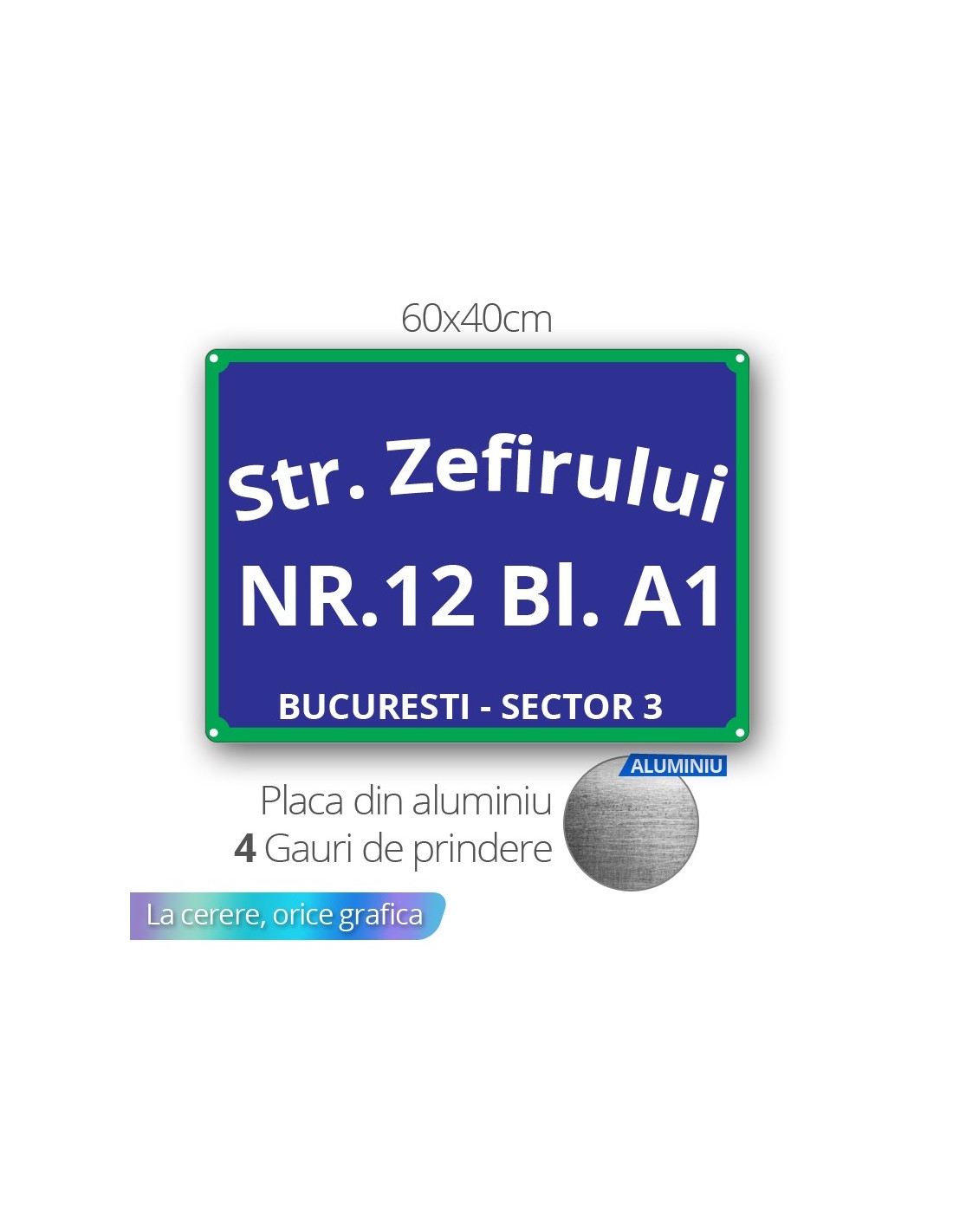 Placa din aluminiu pentru strada model 1, material reflectorizant, cu extra protectie impotriva intemperiilor.