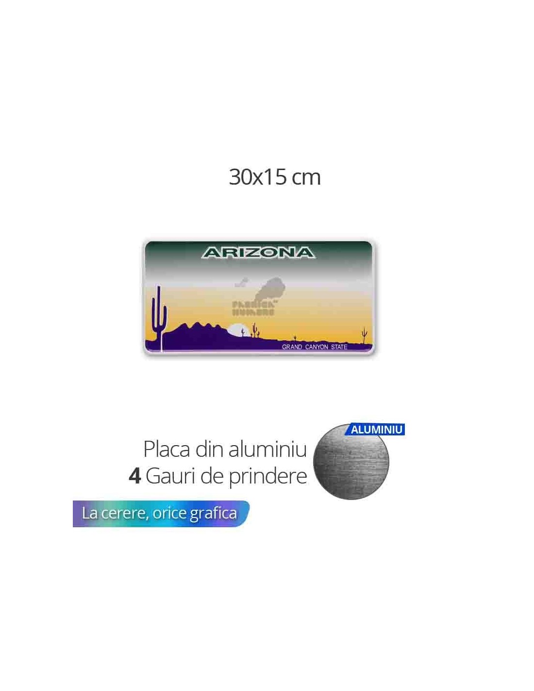Placi americane Arizona, de dimensiune standard (300 mm x 150 mm), configurabila, din aluminiu, logo-ul aplicat din fabricatie, rezistenta la intemperii Dimensiune produs: 300x150 mm