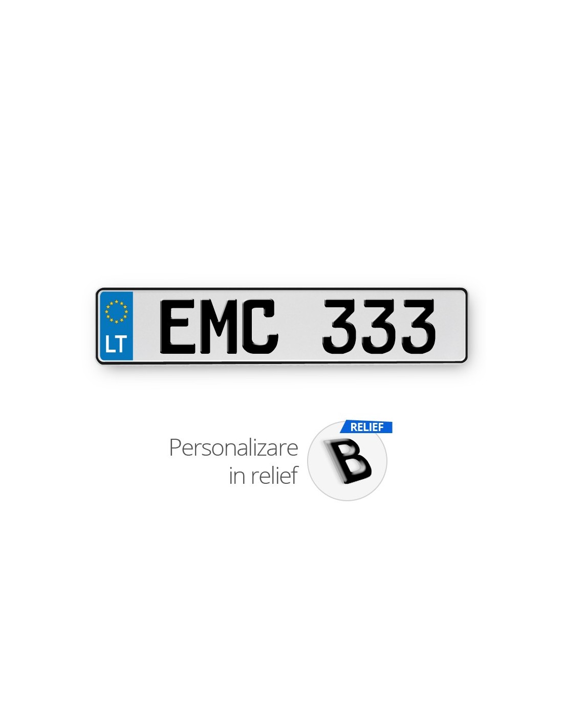 Placa tip numar auto Litoania, dimensiune standard (52x11cm) cu un sticker.