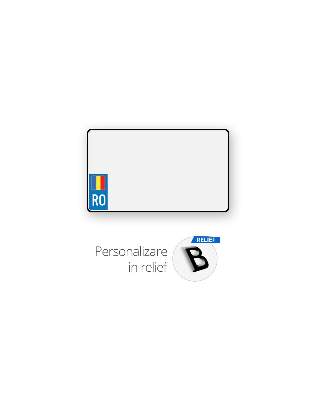 Placa tip numar auto Romania, dimensiune SUV (34x20cm) cu sticker de ROMANIA si Steag.